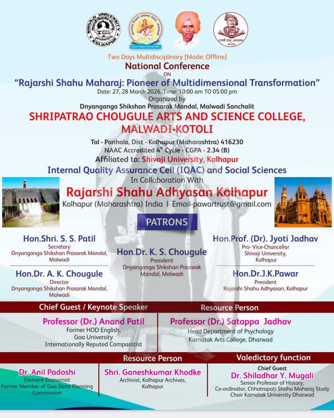 Chh. Shahu Maharaj Conference समाजातील स्त्रियांना निर्भयपणे जगण्याचे स्वातंत्र्य त्यांनी दिले : डॉ. जे. के. पवार मानसशास्त्र विभागामार्फत दिगवडे येथे मानसिक आरोग्य व लिंग फरकावर सर्व्हे संशोधन करणार आहे त्या मध्ये आधी आवड निर्माण झाली पाहिजे : डॉ. एस. एन. गोलगिरे मानसशास्त्र विभागाची व्यसनमुक्ती केंद्रास अभ्यास भेट रसायनशास्त्र विभागामार्फत वेस्ट मॅनेजमेंट प्रॅक्टिसेस दॅट इज बेस्ट फ्रॉम वेस्ट या विषयावर भित्तीपत्रकाचे प्रकाशन श्रीपतराव चौगुले कॉलेज मार्फत जागतिक एड्स दिनानिमित्त रॅली जागतिक एड्स दिनानिमित्त भित्तीपत्रक प्रकाशन २६ नोव्हेंबर संविधान दिन महाविद्यालयात उत्साहात साजरा पदवीधरांनी पदवीधर मतदारसंघांमध्ये नाव नोंदणी करणे गरजेचे ; संस्थापक-अध्यक्ष डॉ.के.एस.चौगुले